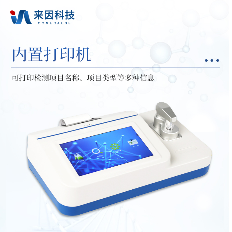 9、仪器内置打印机,可打印检测项目名称、项目类型、检测结果、检测人员、送检单位、送检人员、限量标准等信息;